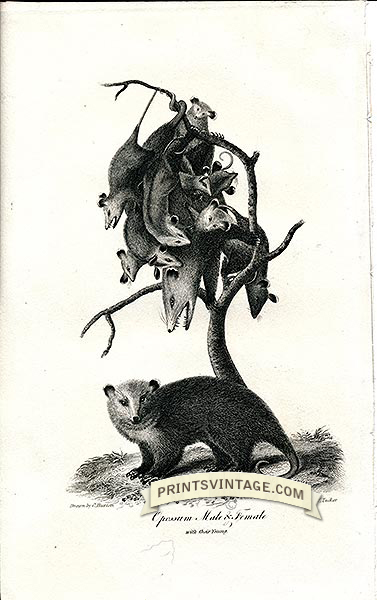 Information: This finely detailed engraving is is over 180 years old and is from work by Dr John Godman, the notable American naturalist and medical doctor. In this work, Dr Godman illustrated and described many of the best known mammals of North America. Date: 1828. This is an original antique print, not a reproduction. Print method: Engraving. Size: Approximately 8.75 by 5.5 inches (22 by 14 cm)